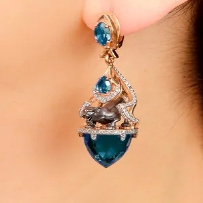 Ди АРС Серьги Дикая природа из золота с лондон топазом и бриллиантами