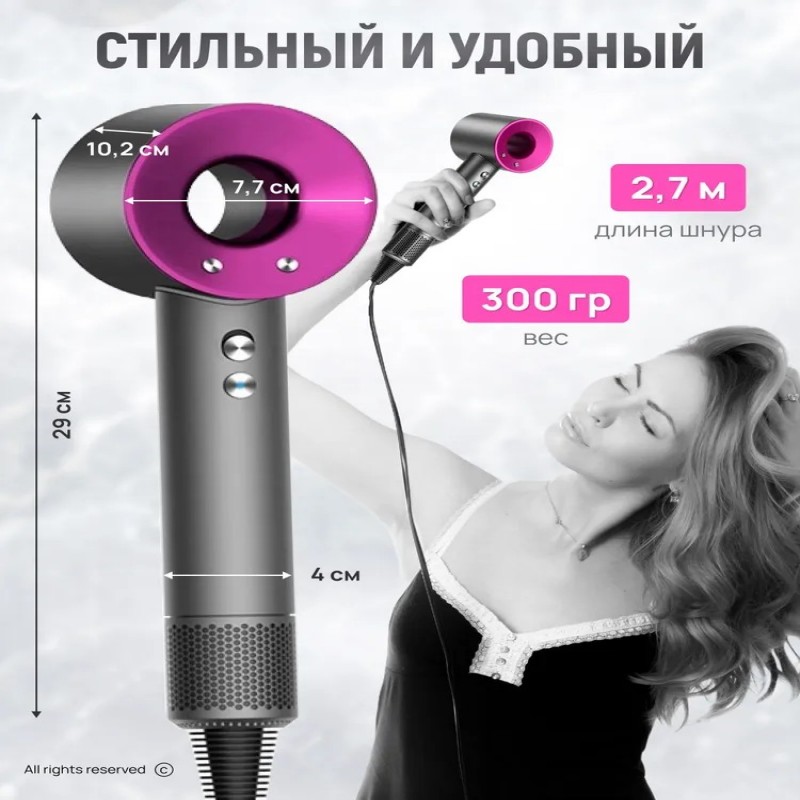 Наш фен для волос - ваш верный спутник на пути к безупречному внешнему виду. Создавайте локоны, придавайте объем, выпрямляйте волосы - всё становится возможным с этим супер инструментом для укладки. Подарите своим волосам нежное внимание и стиль с Super Hair Dryer.