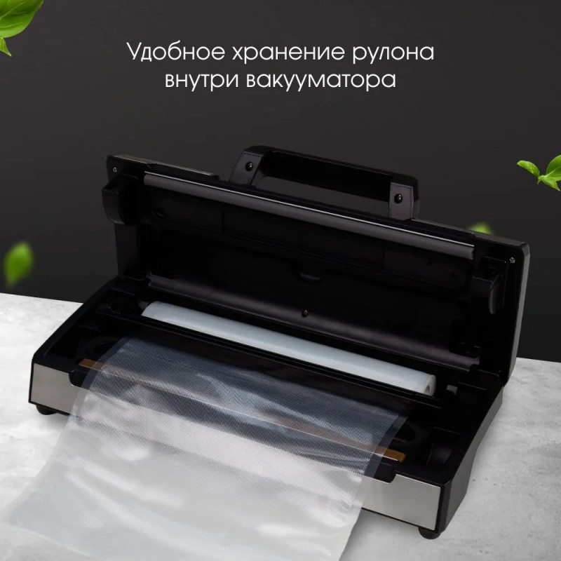 Вакууматор; Вакуумный шланг и контейнер; Рулон вакуумной пленки; Нож для резки пакетов; Инструкция и Гарантийный талон