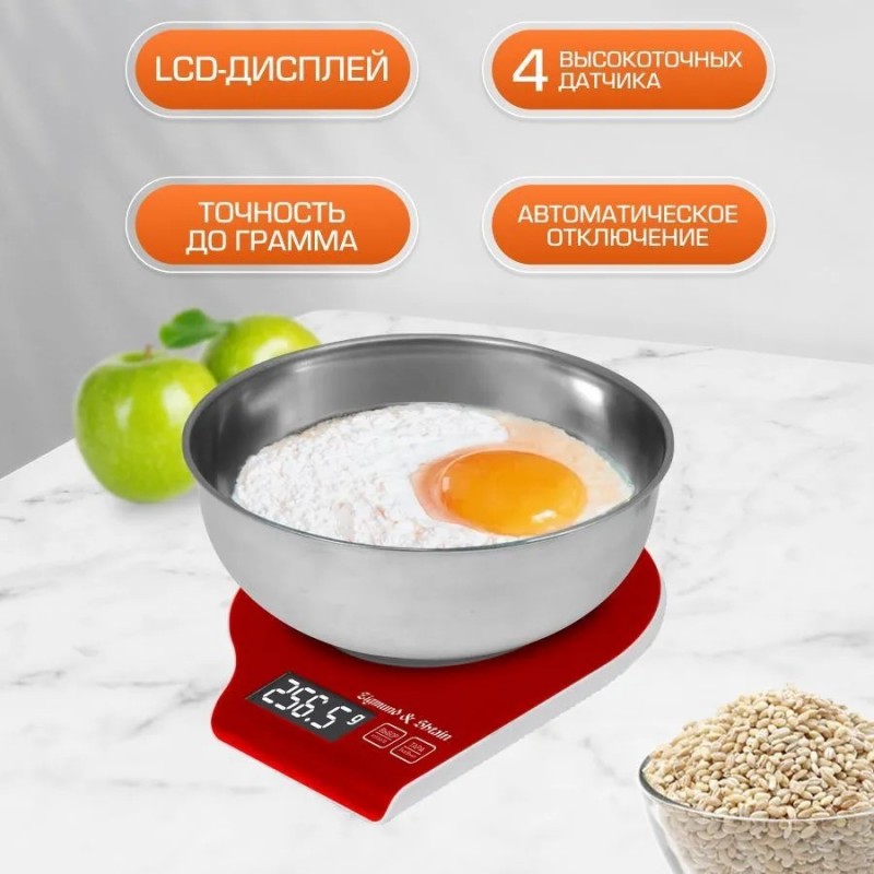 Весы идут в комплекте со съемной стальной чашей, которую можно использовать для подачи блюда на стол.